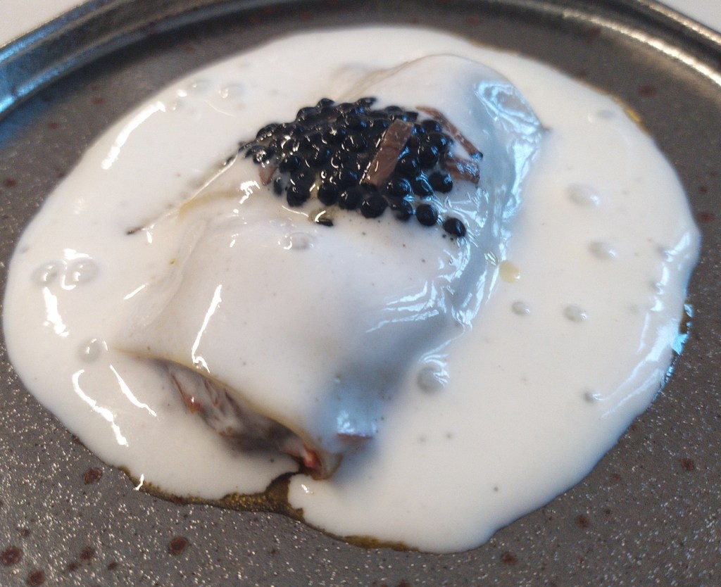 -Canelón de ropa vieja en espuma de besamel y trufa, impresionante.