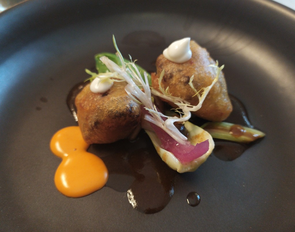 -Ostra crujiente y pan bao con hamburguesa de chicharro, no sabría que decir, sin parecer exagerado, del sabor de estas dos elaboraciones … nos encantó a todos, una maravilla.