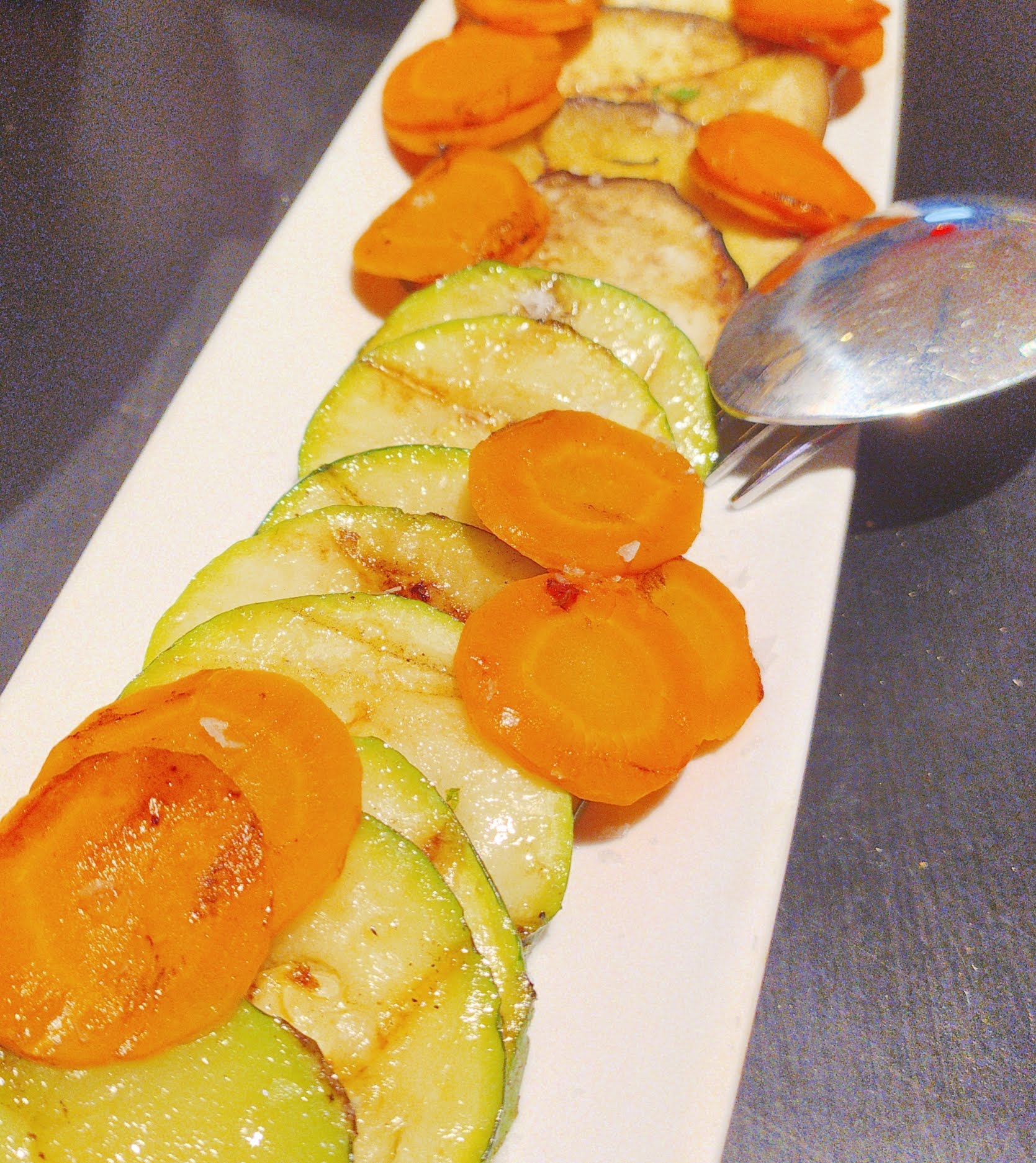 También pedimos unas verduras a la parrilla … calabacin (mucho), 4 rodajas de berenjena y zanahoria … muy triste ese plato.
