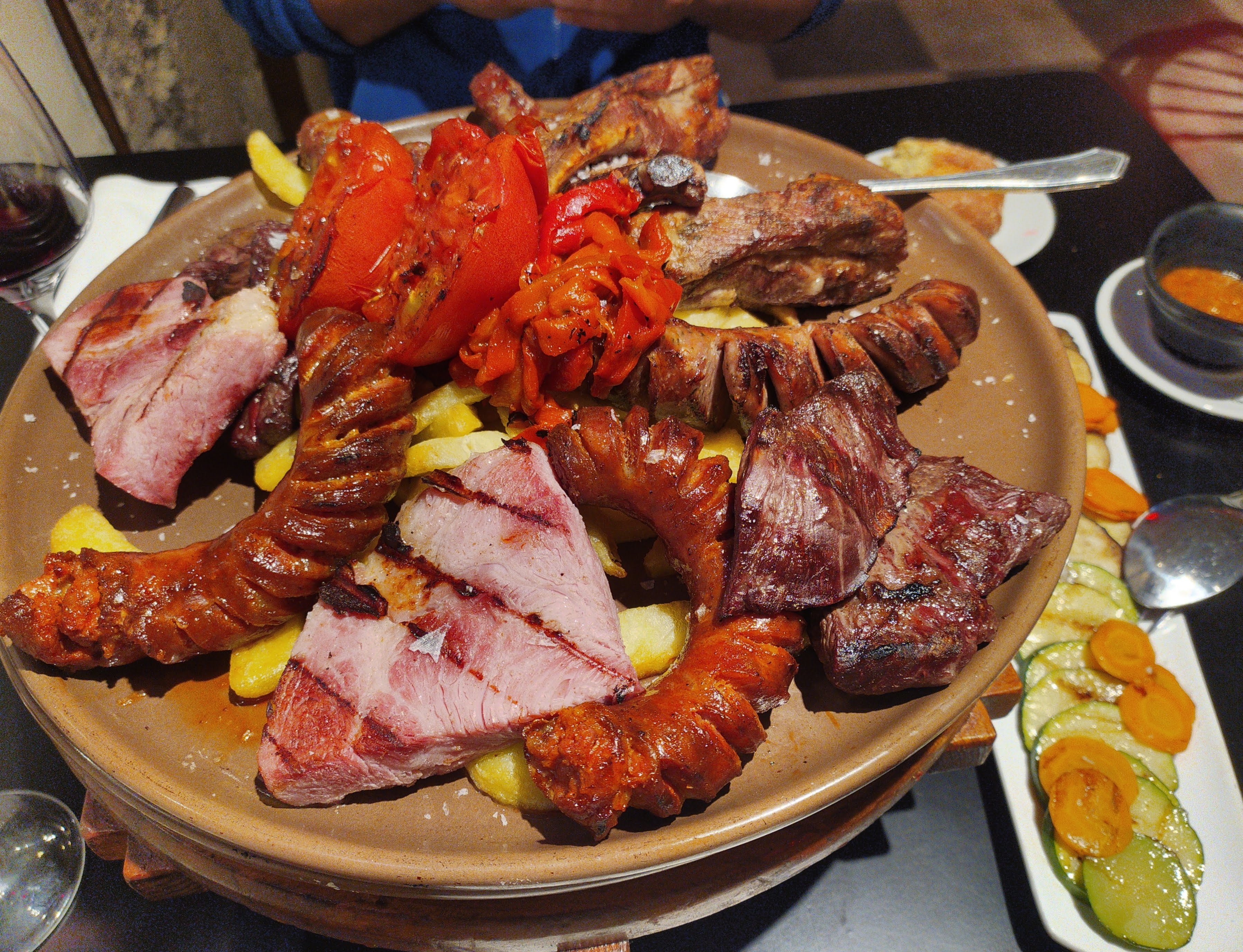 Nos dieron la opción de menú y carta, dado que el menú, era el mismo que el día anterior (lo cual ya no presagia nada bueno) nos decidimos por carta, y como buenos carnívoros, nos decantamos por la parrillada de carne.