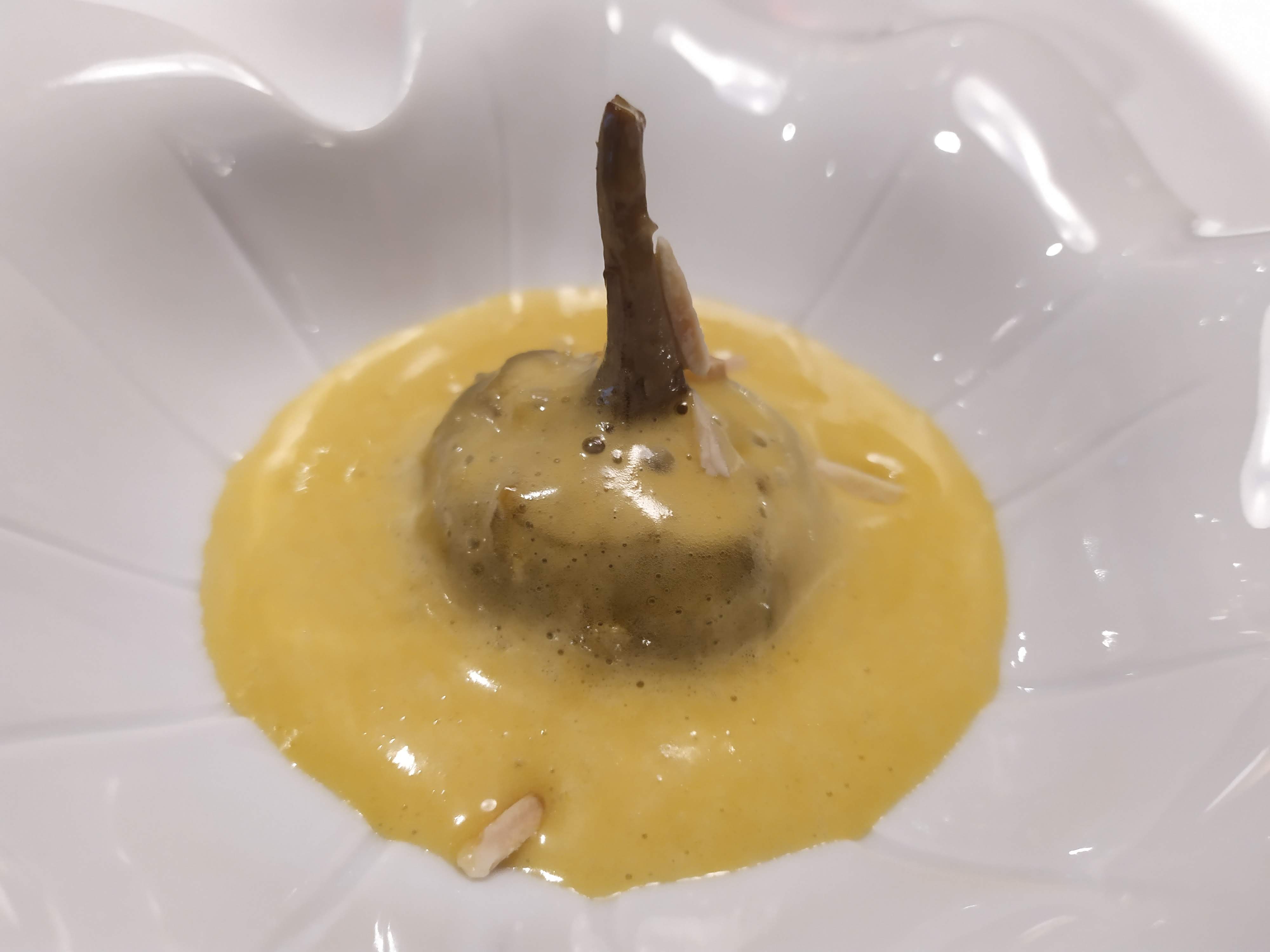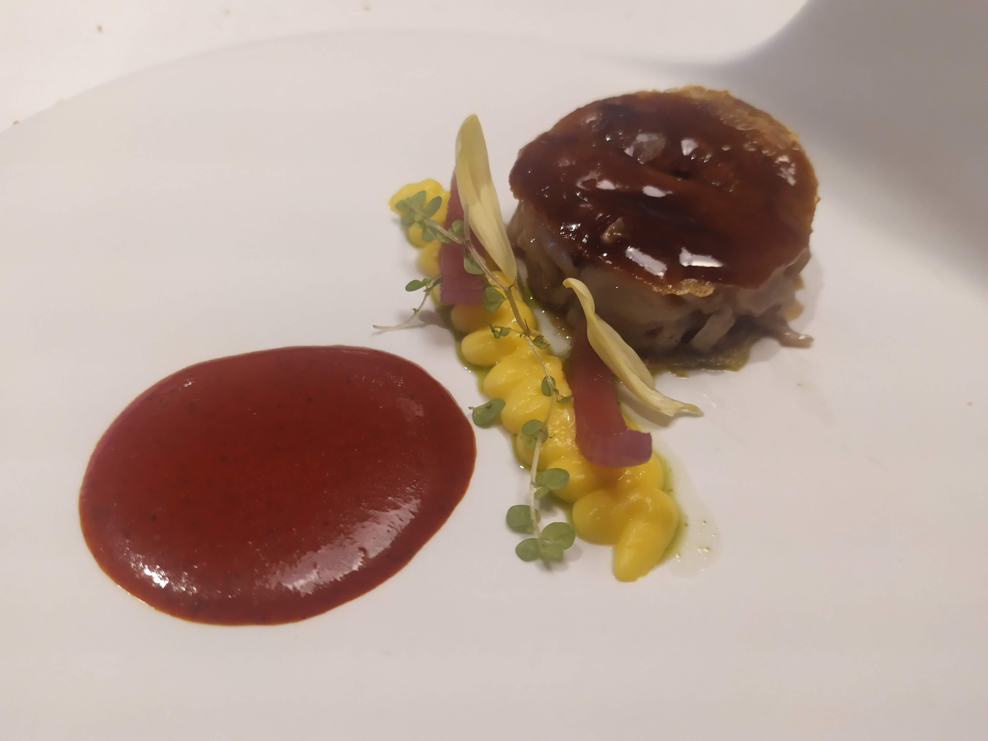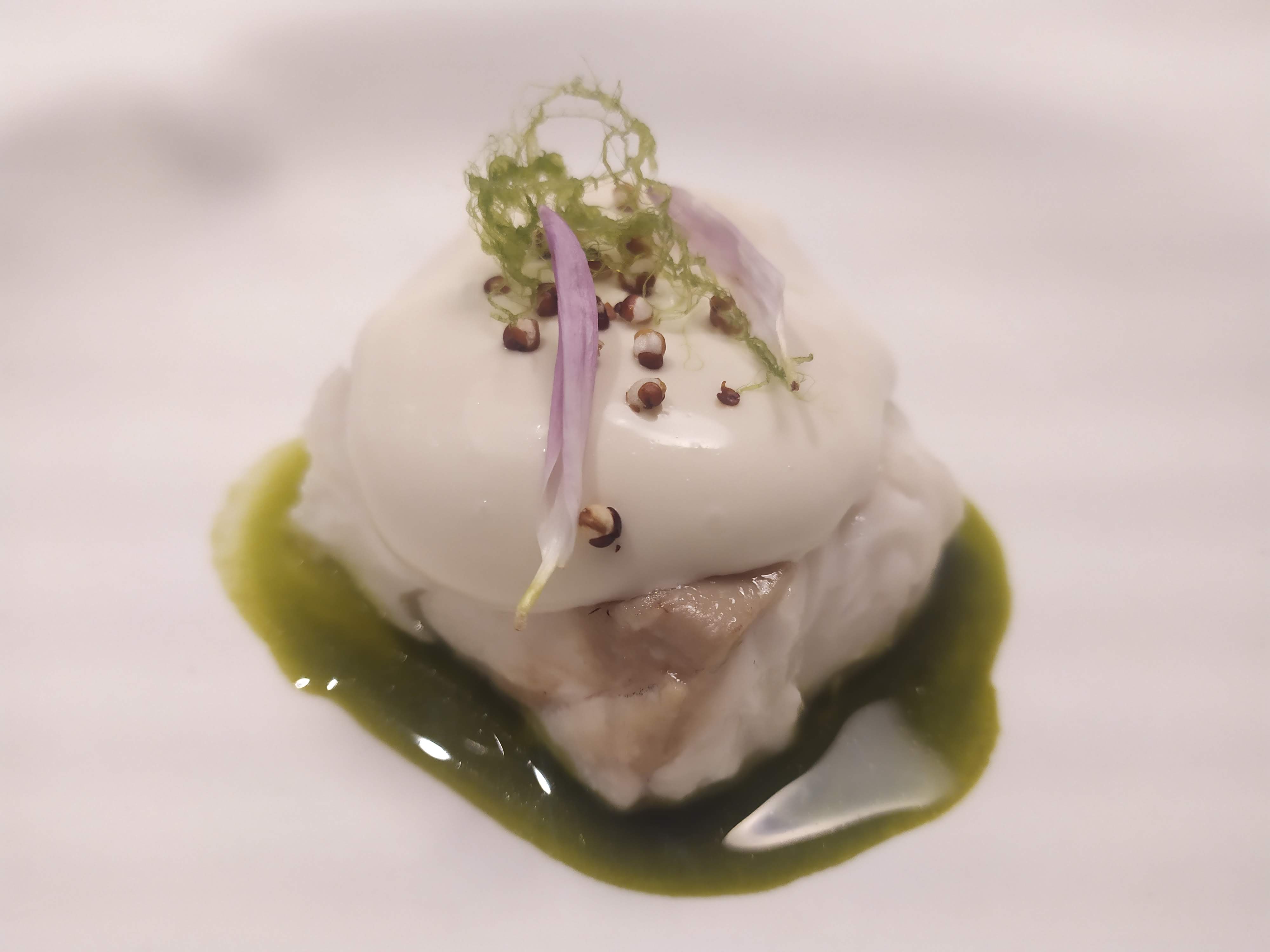 — El tomate de Ampuero de un bocado, ninguno de los tres comensales le sacamos el gusto que quizás el chef querría, para mi era agua de tomate metida en «un disco de hockey» que supongo estaba hecho de tomate, nos faltó un empuje, un sabor un poco más a solo agua de tomate. Pero en 18 platos no pueden gustar todos 😀