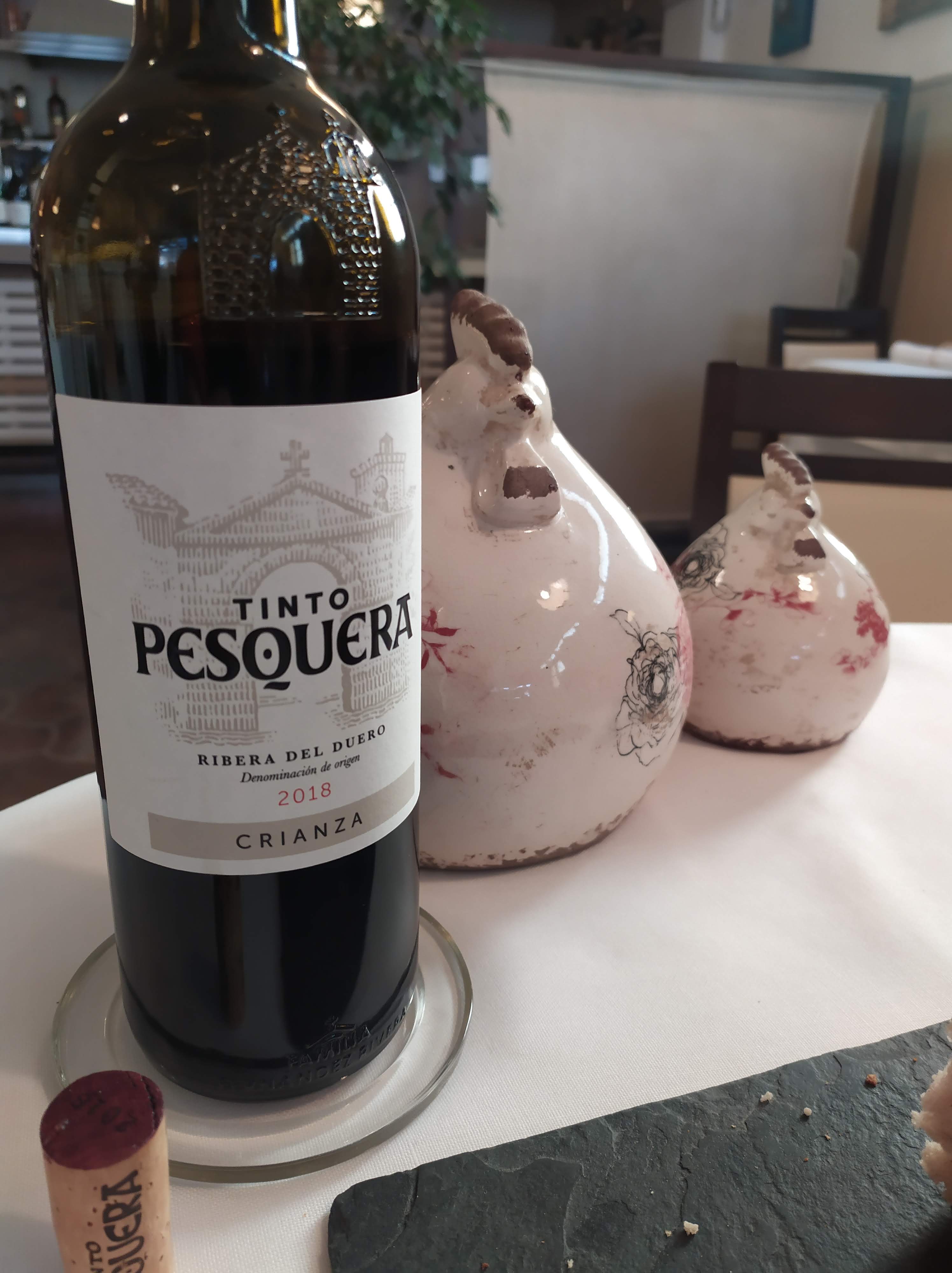 Para el plato fuerte cambiamos de vino, nos propusieron un Pesquera, tinto crianza de la Ribera del Duero, genial vino para lo que venía a continuación.