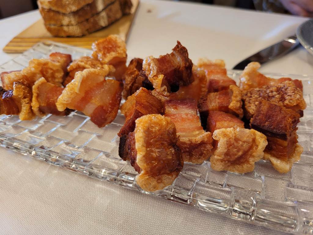 -Torreznos, no pueden fallar … Estos no estaban mal, aunque les falto algo de «crujientor»
