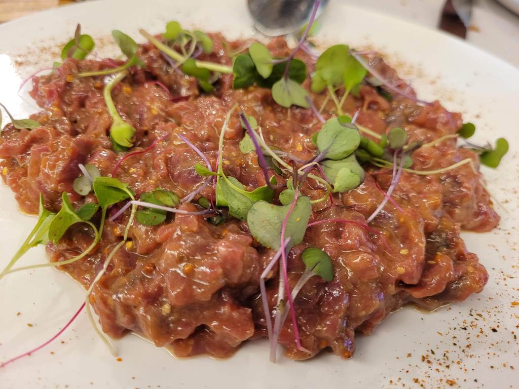 -Steak tartar, este estaba bueno, fresco y algo picante, me gustó.