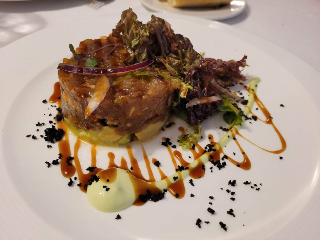 El tartar … para mi, un desastre, podían haberlo llamado de cualquier otra manera, sabia a todo menos a atún y tartar, demasiada mostaza, demasiado de algo que era dulce, demasiado piñón (creo) … demasiados ingredientes que enmascaran el producto (eso da que pensar)