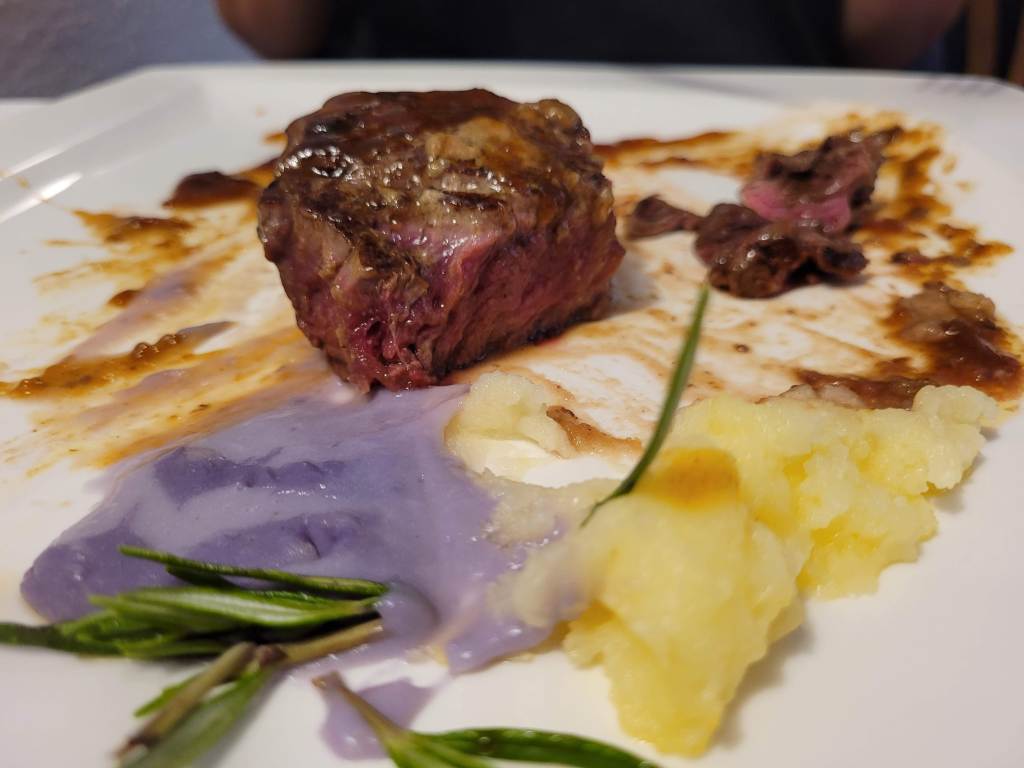 Solomillo de vaca, patata y foie. Lo de vaca lo dicen porque era la madre, esa carne no tenia apenas sabor, era ternera, que estaba suave y hecha al punto exigido, pero no era vaca.