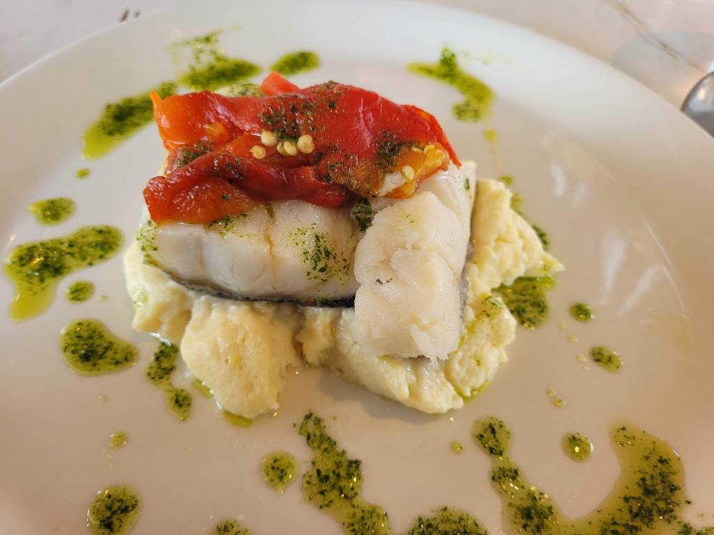 **El bacalao, muy seco, se notaba que era congelado y recalentado, el parmentier, era mas bien un puré denso de patata, que sabia bien, pero no era parmentier, y los pimientos, correctos.
