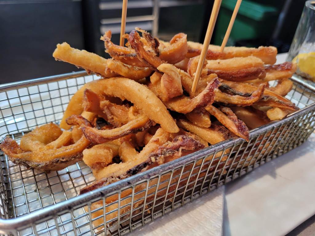 Los acompañamos muy bien con unas rabas y unos caracoles con su salsa tradicional. Las rabas de las mejores de Santander para mi.