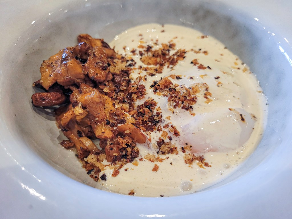Este plato es otoño puro. Setas salteadas al dente, yema líquida escondida bajo una crema carbonara de escándalo, y por encima, migas crujientes que daban ese contraste que te hace cerrar los ojos. Uno de mis favoritos, sin duda.