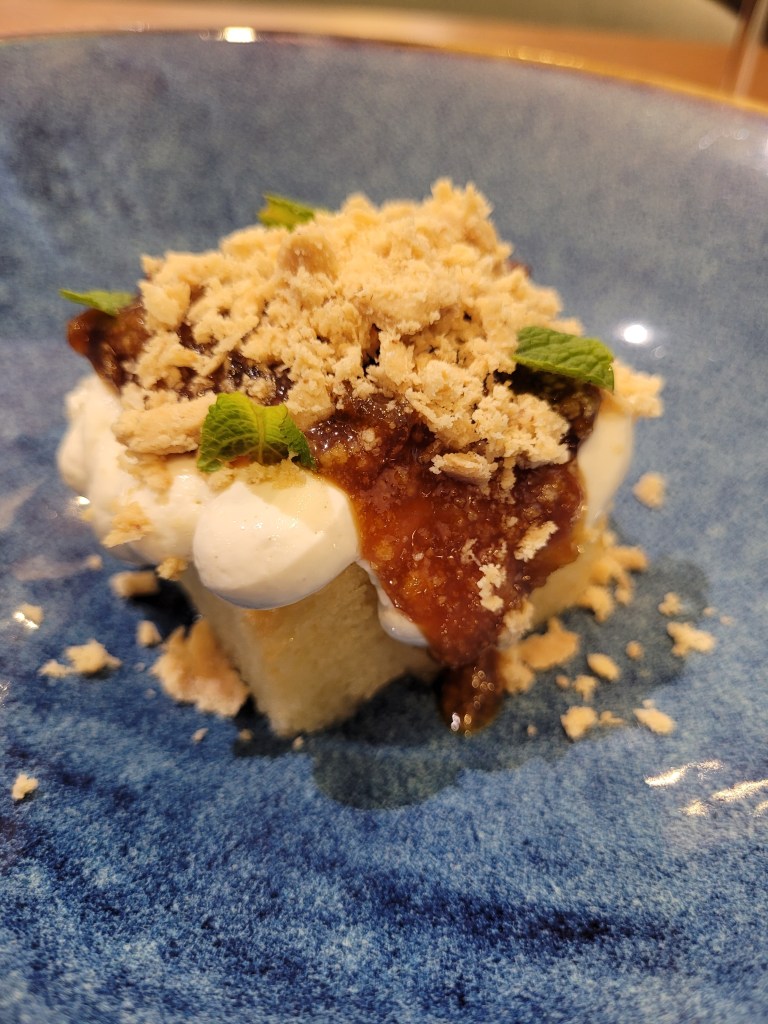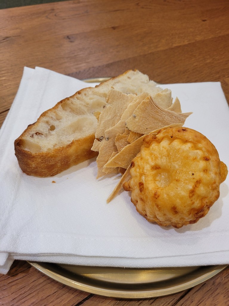 Tres quesos: Cabrales, parmesano y el mismo del plato anterior sin el crujiente. Sensación de tabla improvisada, escasa y con poco recorrido.