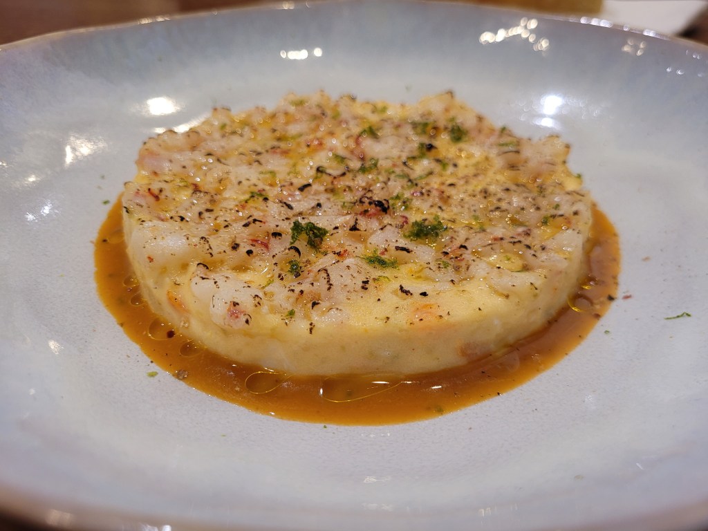 La ejecución en cocina es correcta, el punto bien trabajado. Pero la presentación transmite cierta falta de mimo. Los cortes son gruesos, demasiado, y no en el sentido generoso, sino poco delicado.