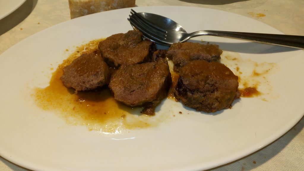 Las croquetas muy ricas, un tema importante el de las croquetas 😀 y la carne suave y bien sazonada.