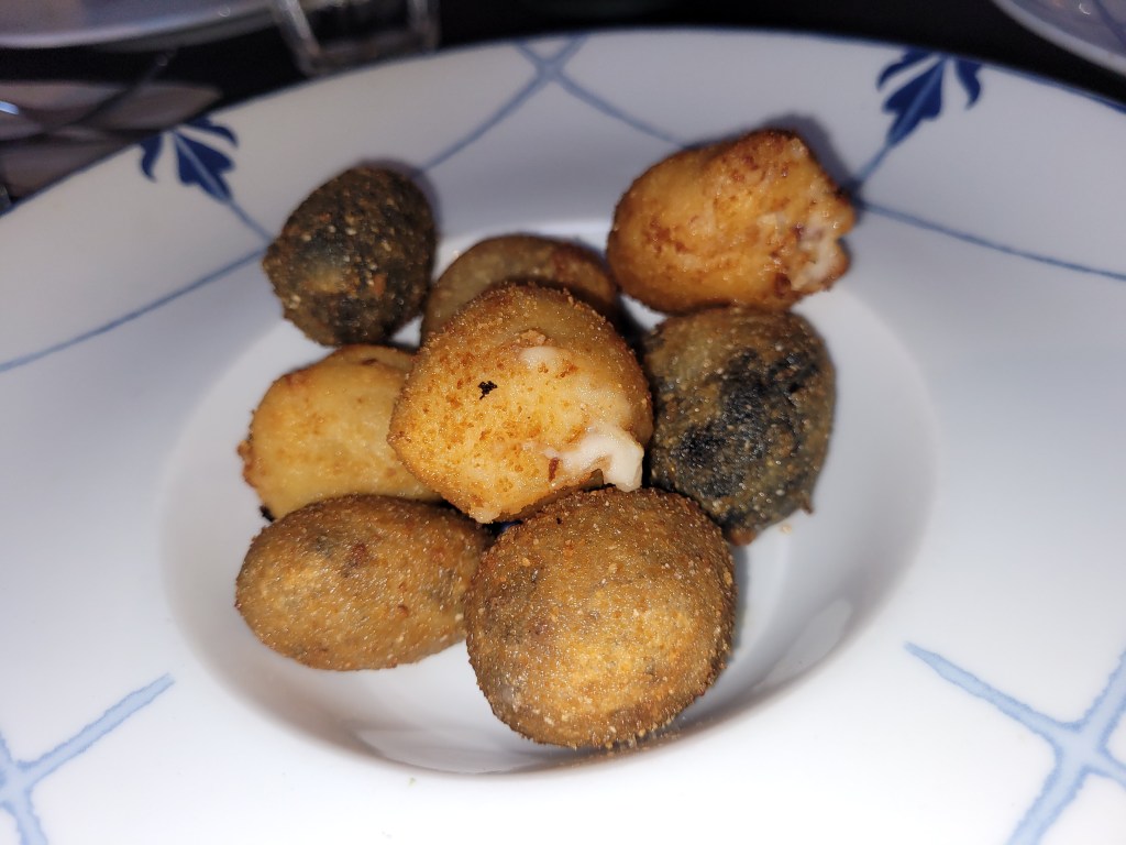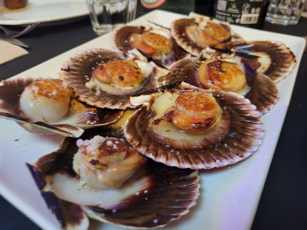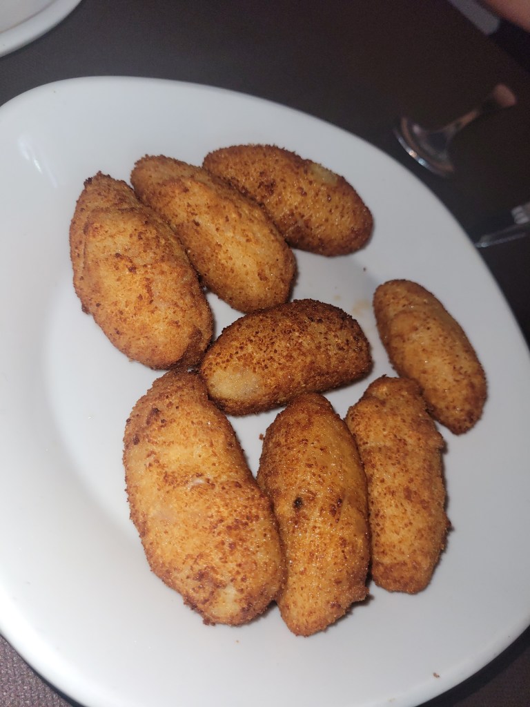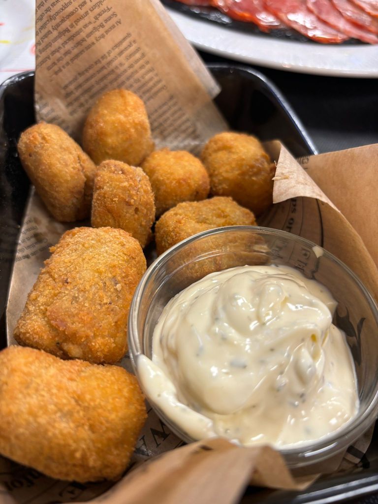En los entrantes elegidos, la cecina de vaca resultó ser un producto de gran calidad, con un sabor intenso y bien curado. No ocurrió lo mismo con la paleta ibérica, cuyo carácter se quedó corto; lejos de lo que se espera de un ibérico auténtico, daba la sensación de necesitar un 50 % más de identidad.